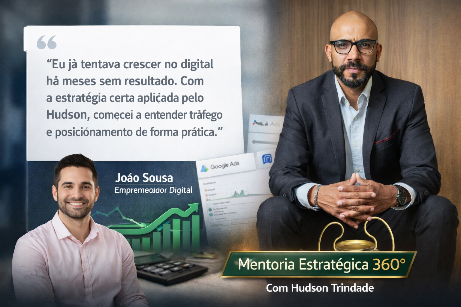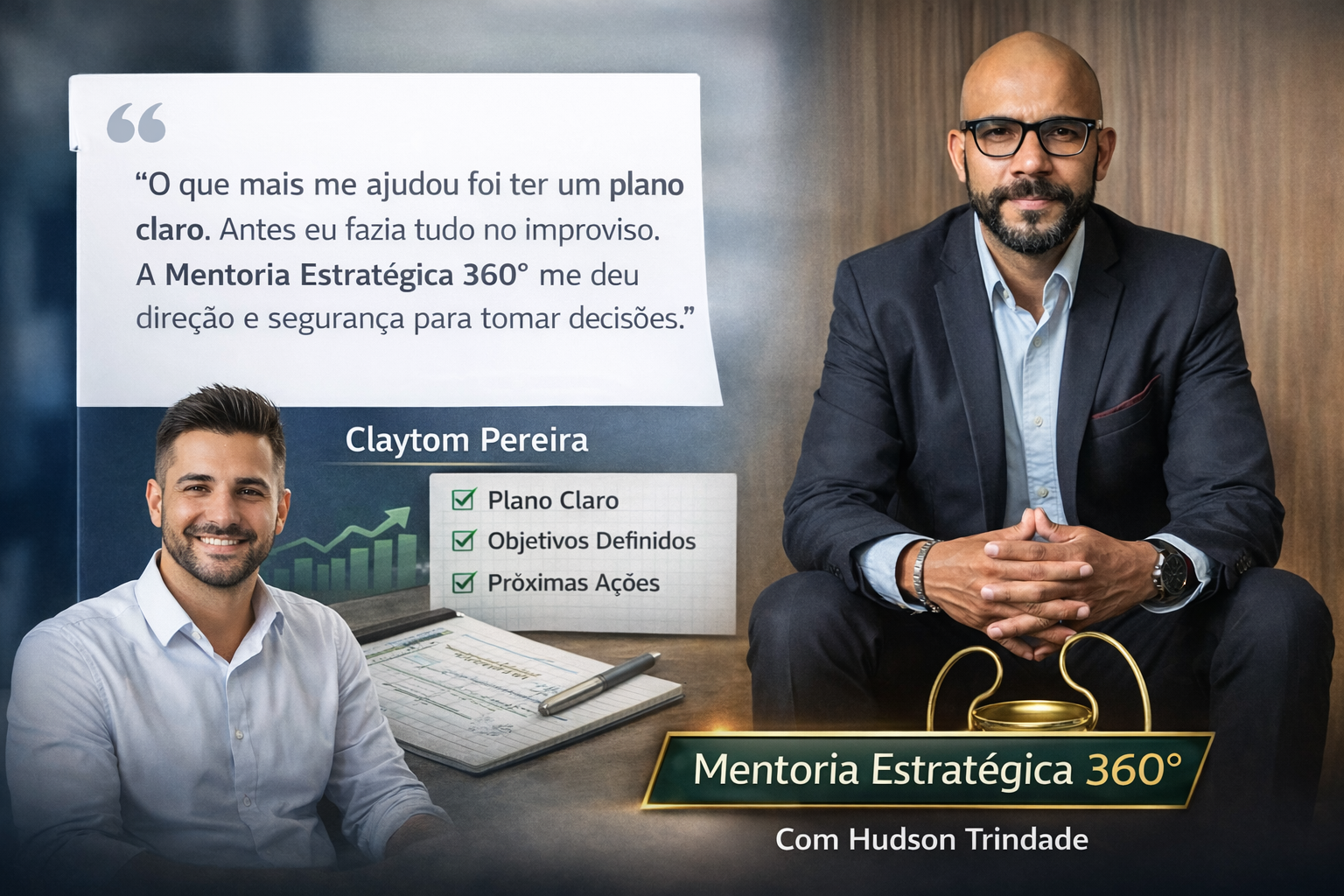 Com uma visão prática e orientada a resultados, Hudson desenvolveu a Mentoria Estratégica 360°, um método que integra direcionamento financeiro e crescimento no marketing em um único plano estratégico.